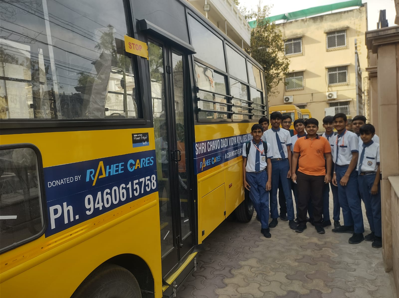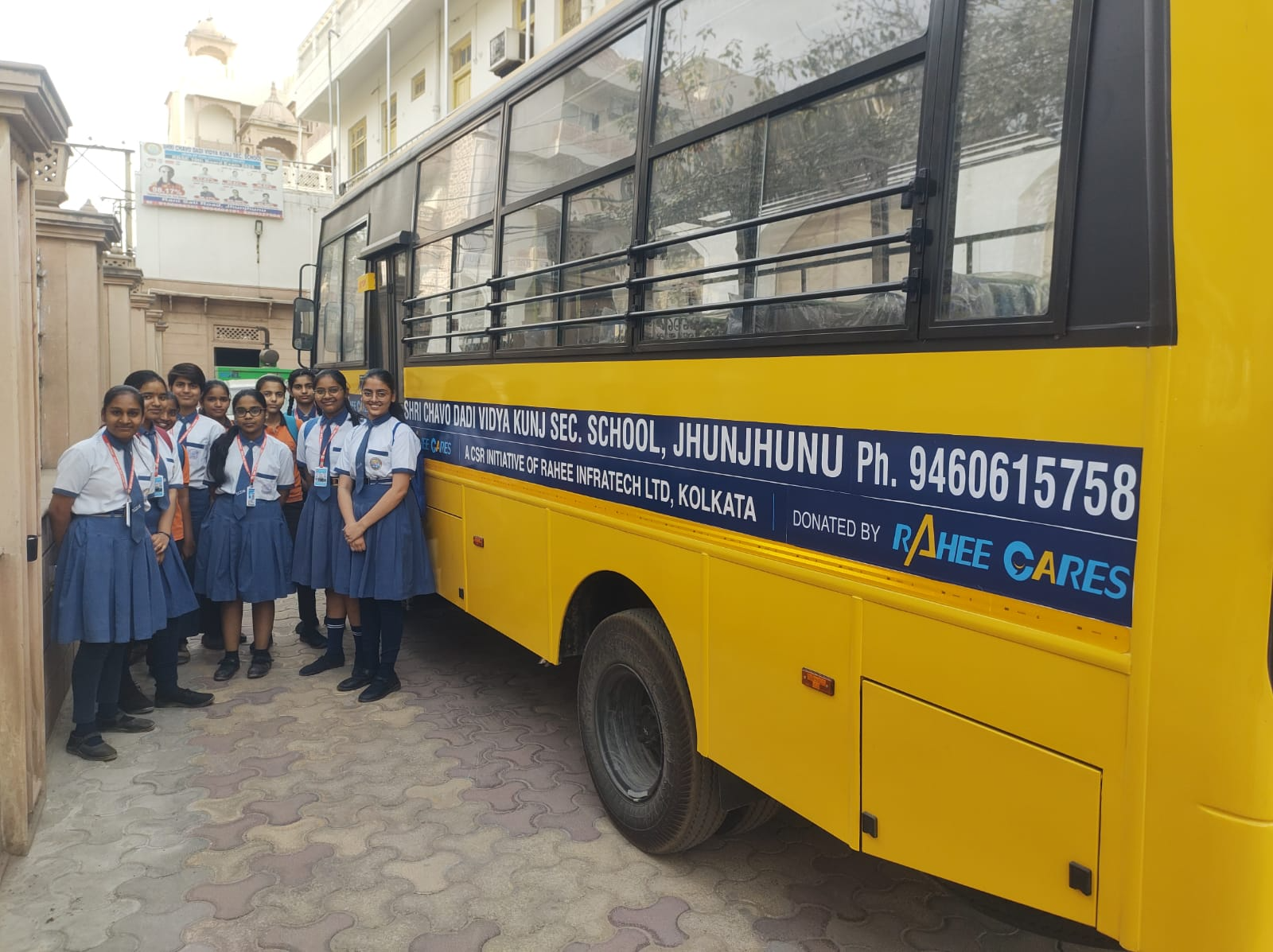 Rahee Cares is pleased to extend its support to Shri Chavo Dadi Vidya Kunj Senior Secondary School, Jhunjhunu, Rajasthan, through the donation of a school bus as part of our CSR initiative. This contribution is aimed at making daily travel to school safer and more accessible for students from surrounding rural areas. Through such initiatives, we remain committed to strengthening educational opportunities and supporting the overall development of communities.